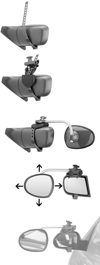 Spiegelkappen zijn soepel in elke richting te verstellen, net als uw eigen autospiegels.